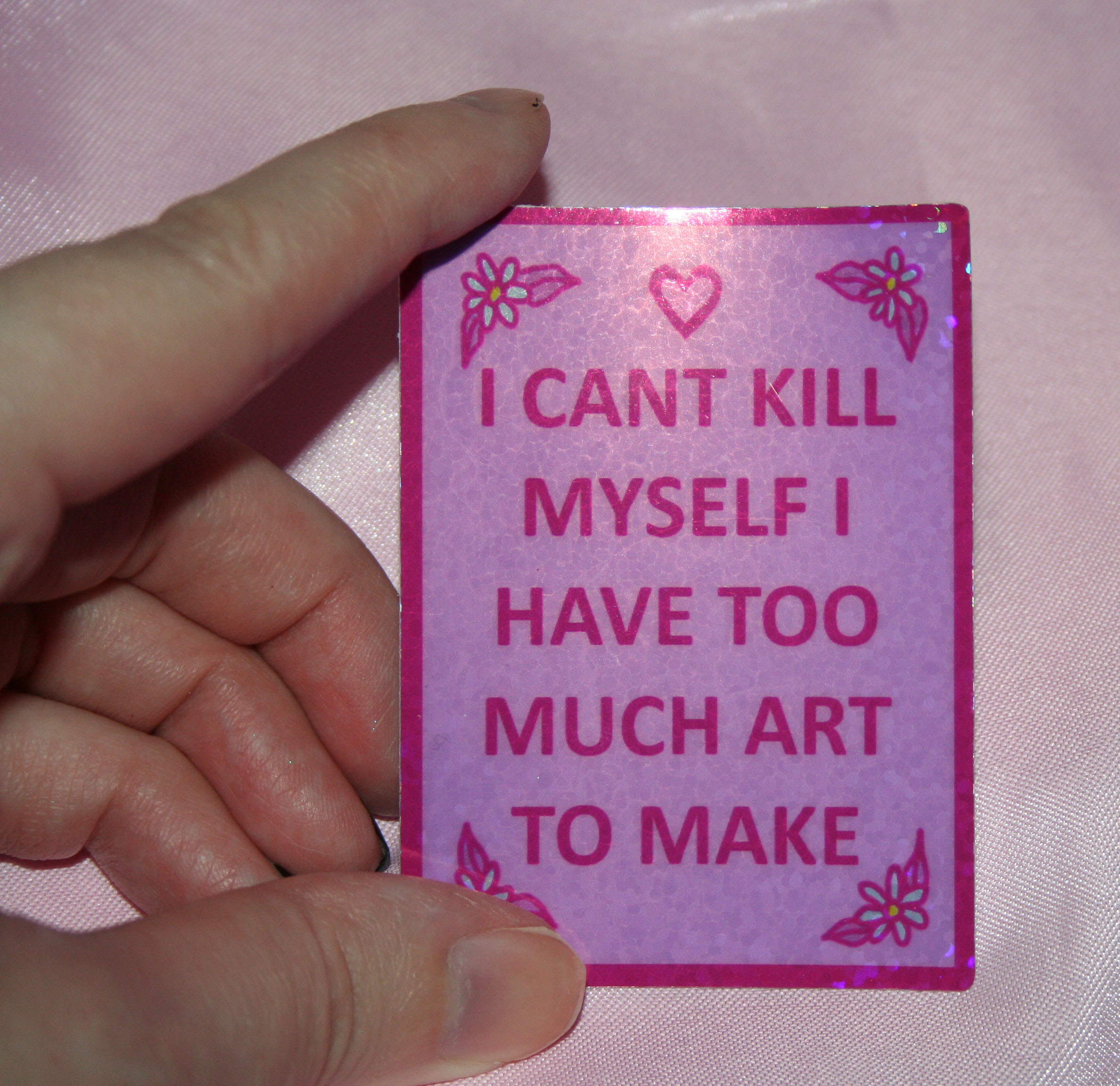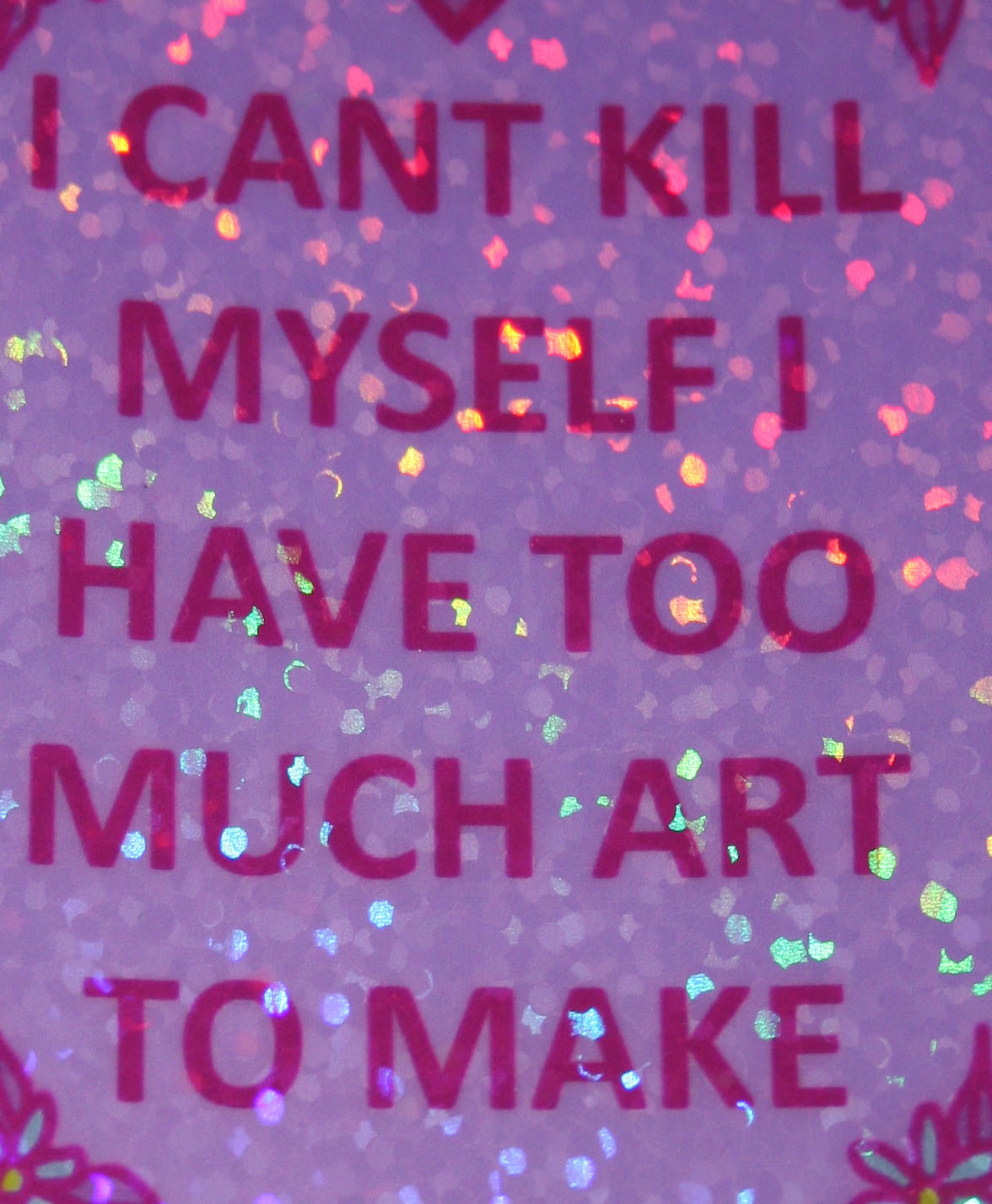 I cant kill myself I have too much art to do glitter holographic vinyl sticker