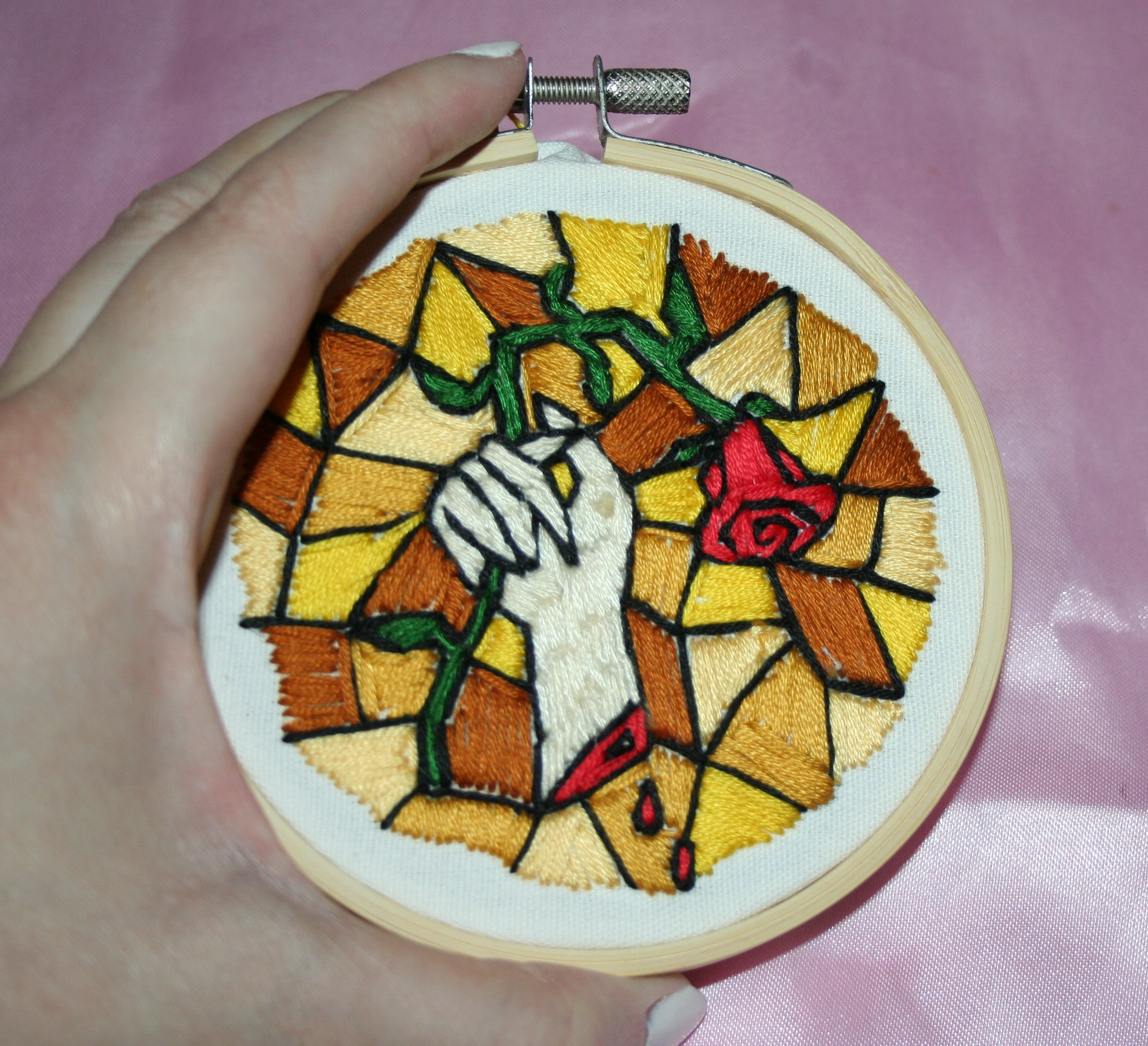 Hand With Rose Stained Glass Embroidery Hoop